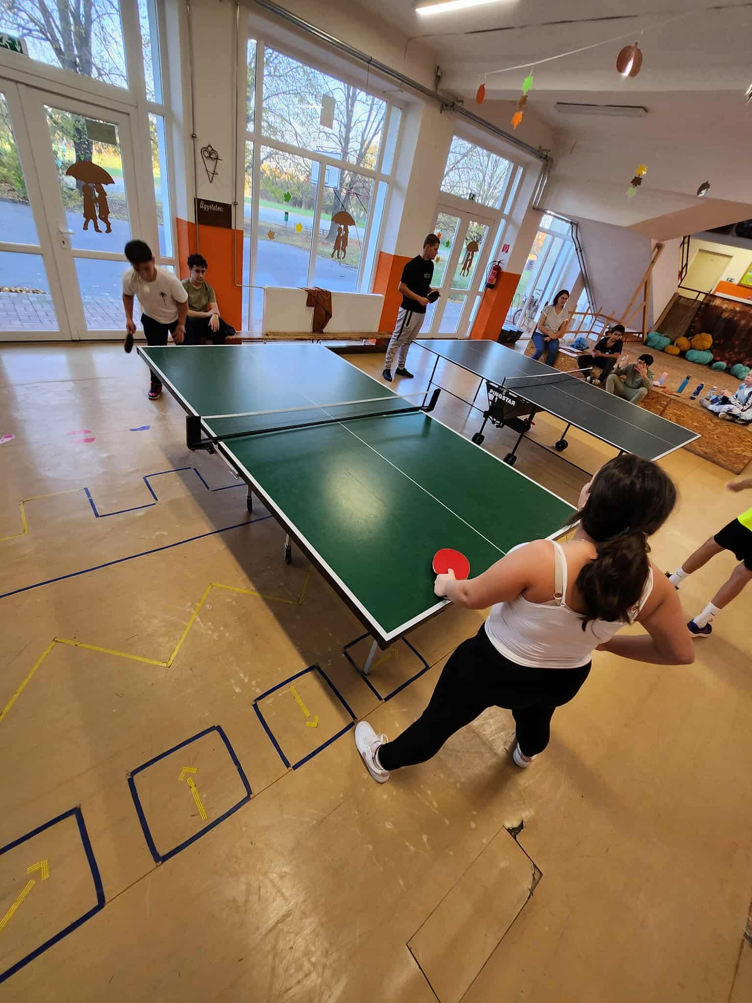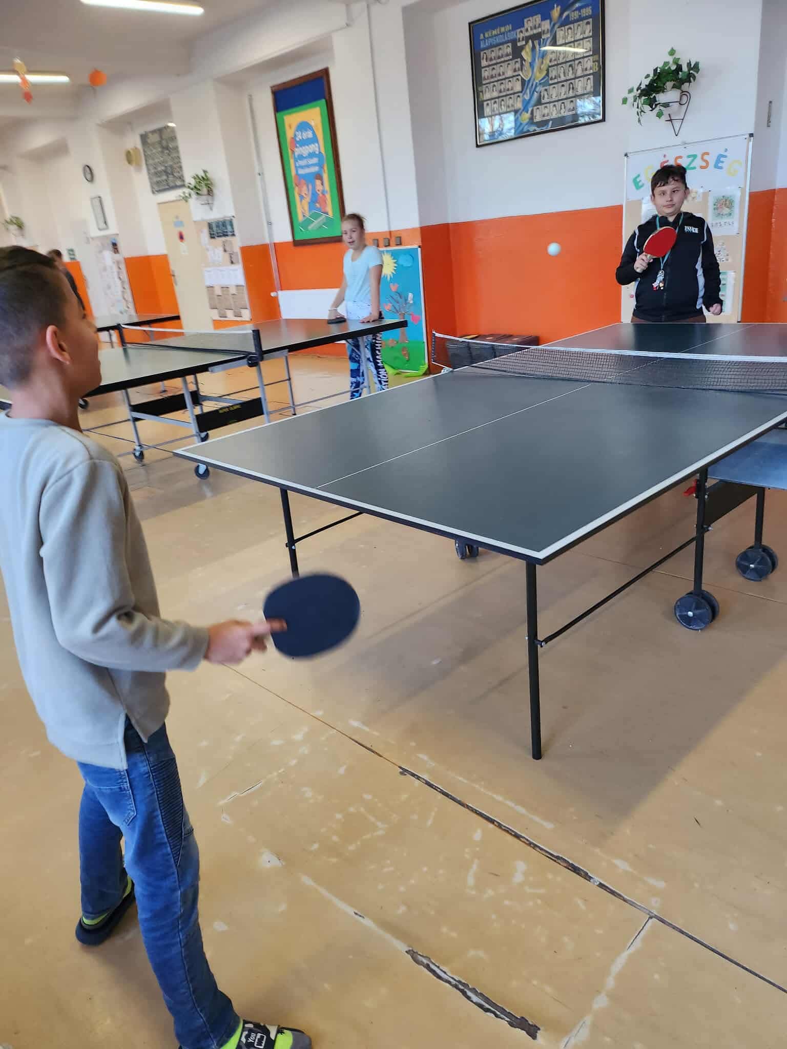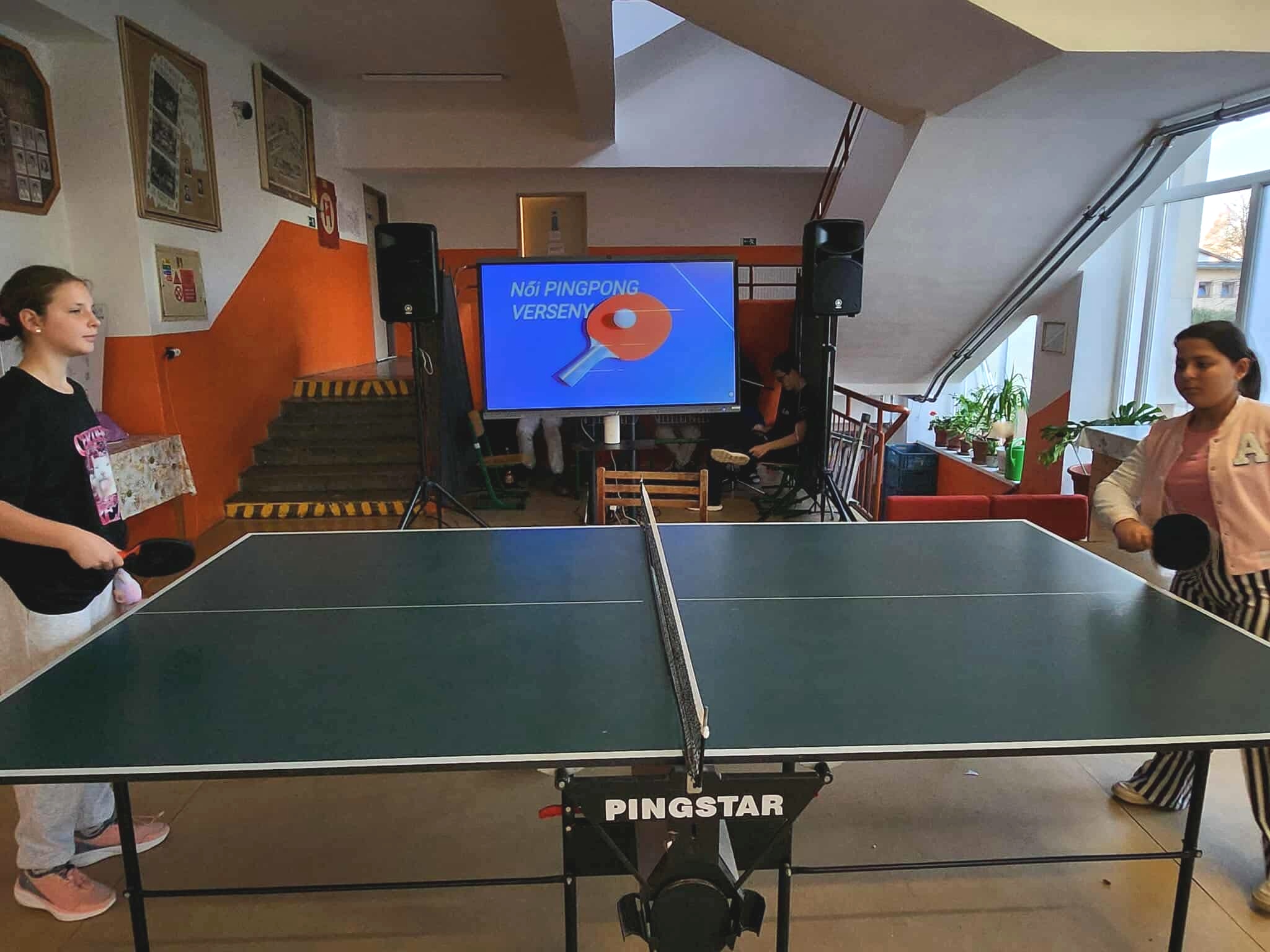 Iskolánkban idén is megtartottuk a fergeteges 24 órás pingpong kihívást. Délelőtt az alsó tagozatosok váltották egymást az asztaloknál, addig a felső tagozatosok különböző állomásokon, csapatokra osztva oldottak meg változatos feladatokat. A pontosságon kívül fontos volt a gyorsaság és a kreativitás is. A kilencedikes lányok palacsintával kedveskedtek a győztes csapatnak. A nap folyamán a pingpong versenyen kívül számháború, és rengeteg izgalmas program várta a résztvevőket, mint a lövészet, floorball, tánc, vagy a rejtvényfejtéssel összekötött esti kincskeresés, valamint az elmaradhatatlan közös mozizás. Reggel fáradtan, de élményekkel gazdagodva zárult a 2025-ös 24 órás pingpong. Igazi közösségi élmény volt, tele nevetéssel, vidámsággal és sok-sok zenével!