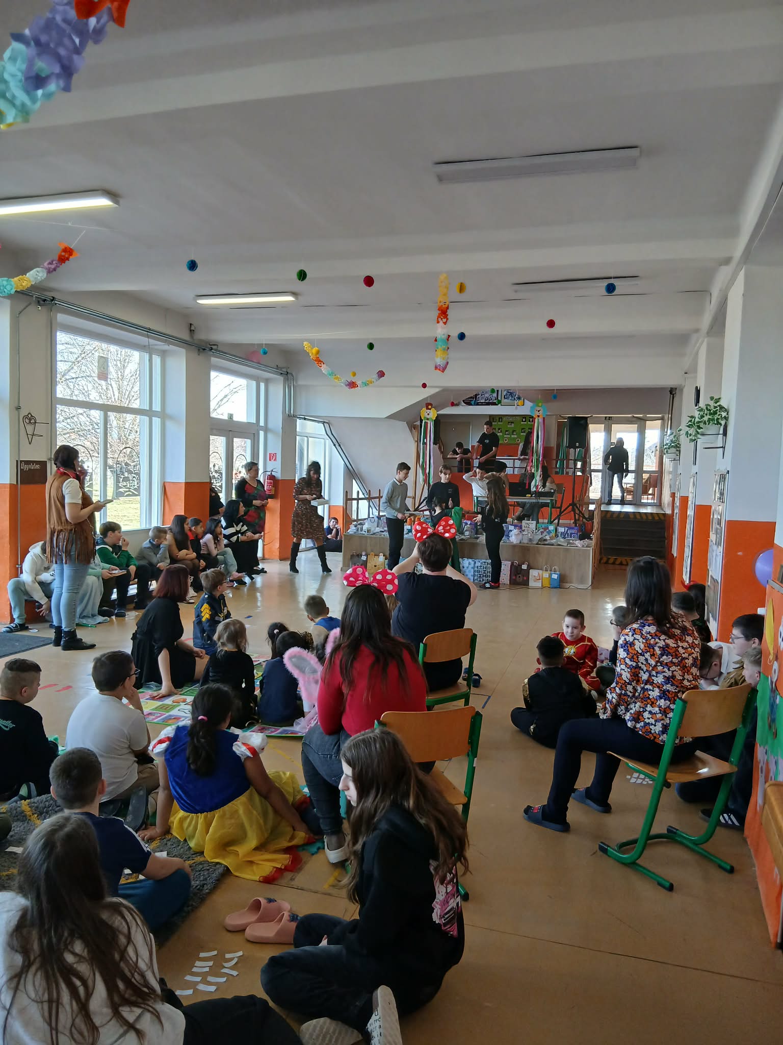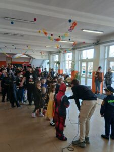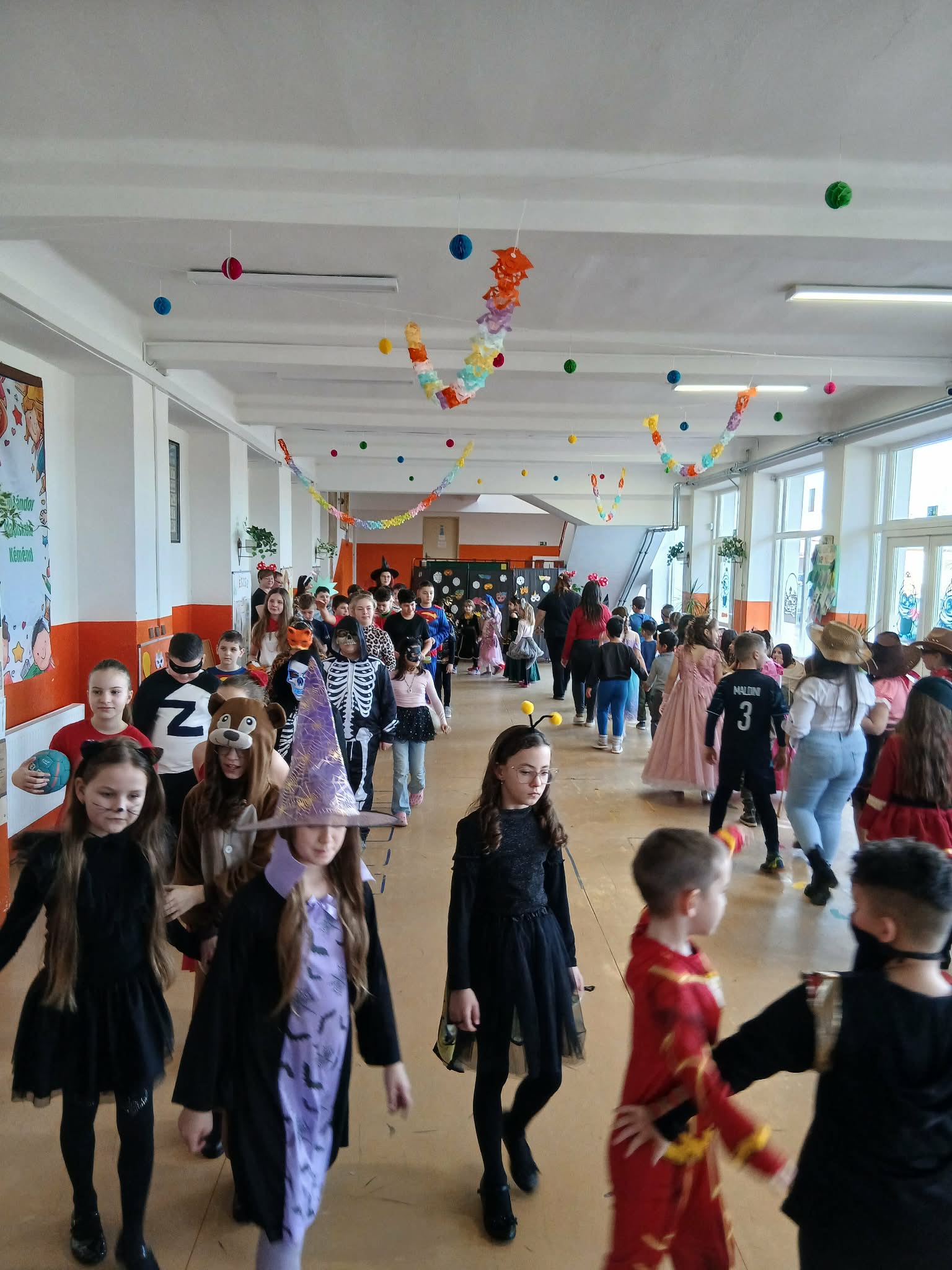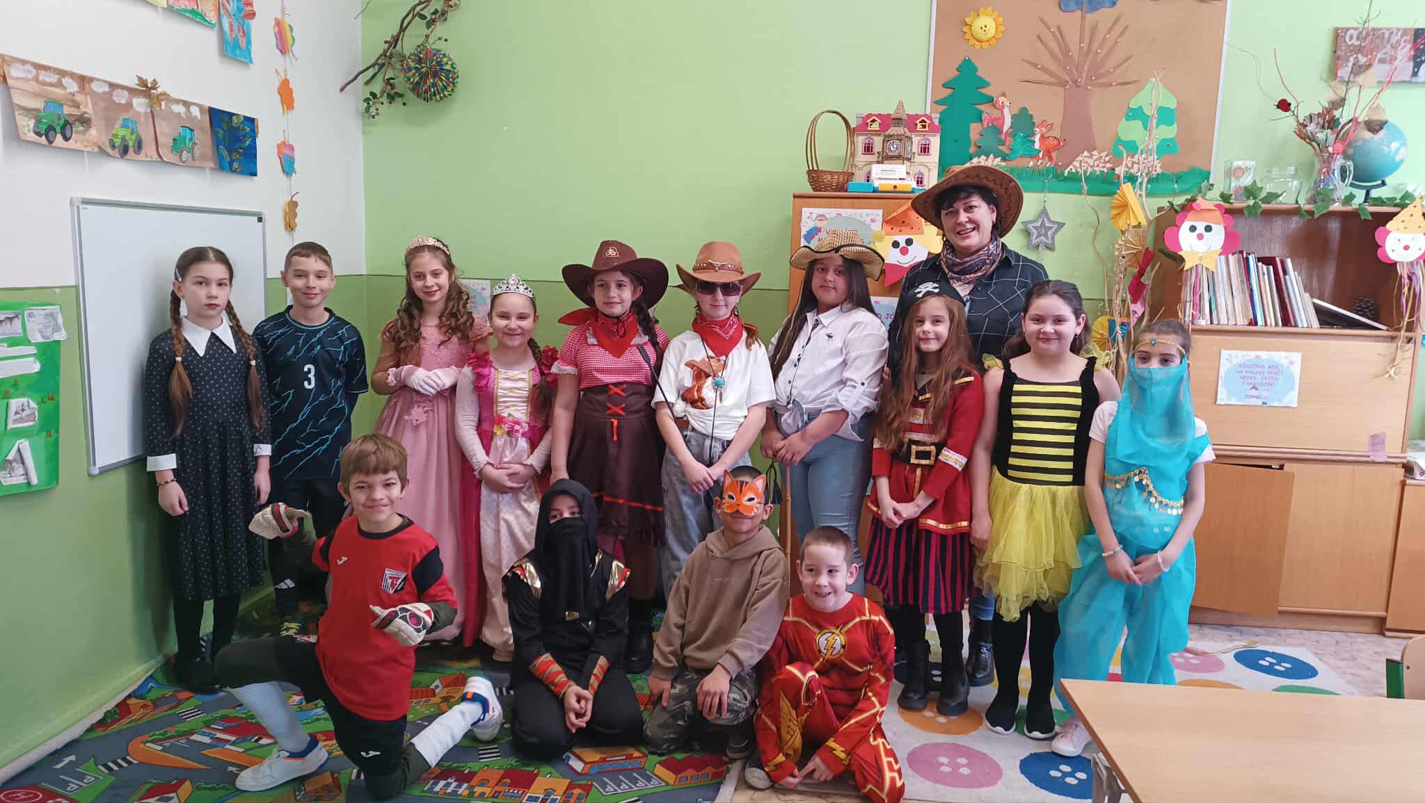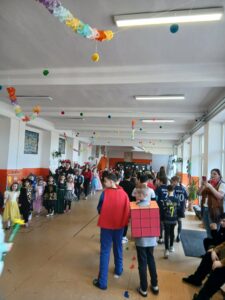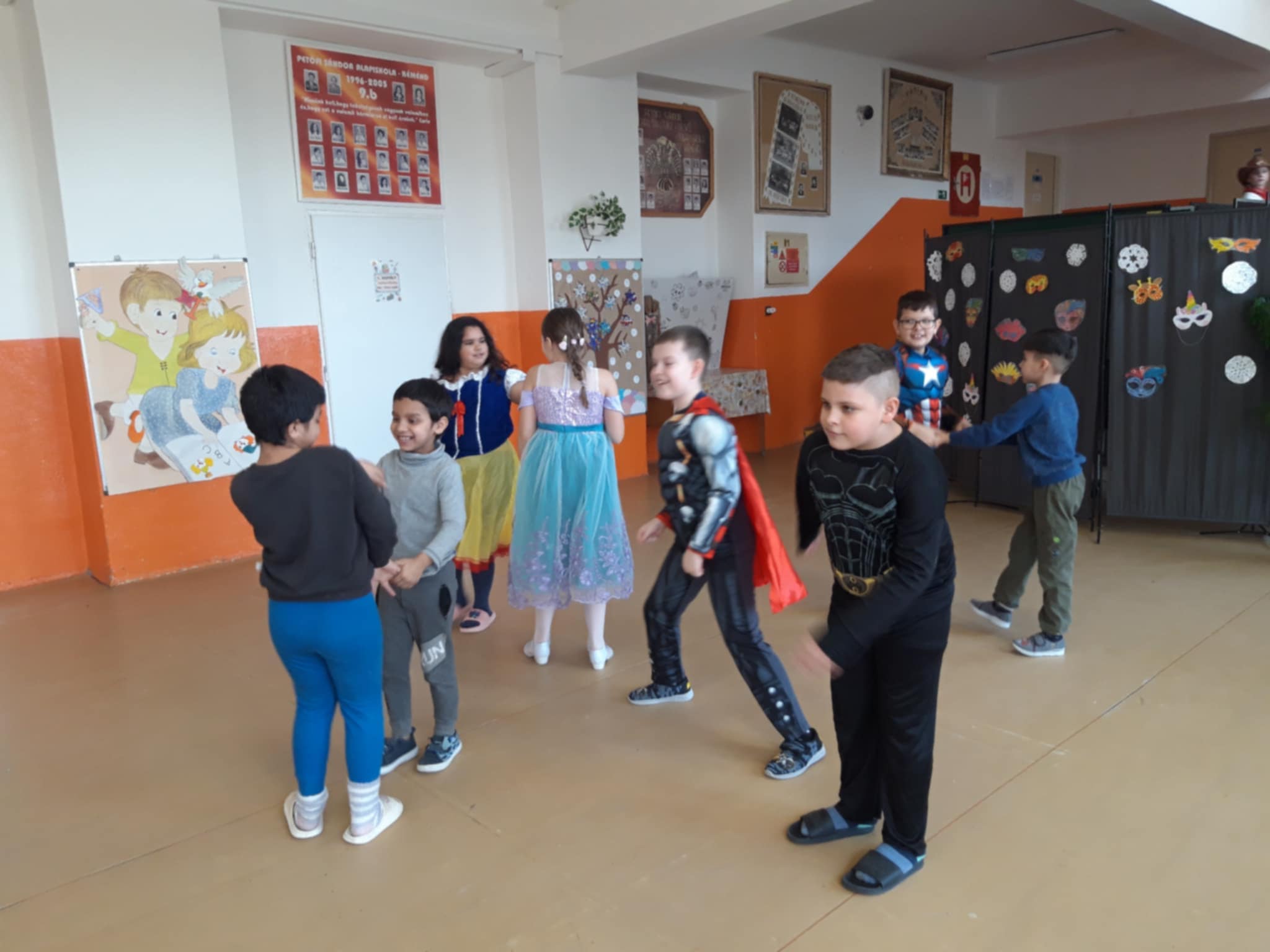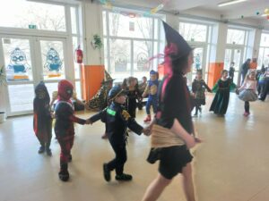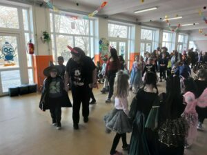 Az iskola megtelt hercegnőkkel, szuperhősökkel, állatos és sok más vidám jelmezzel. Rengeteg tombolát osztottunk ki, sokat táncoltunk, játszottunk, és persze finomságokból sem volt hiány.